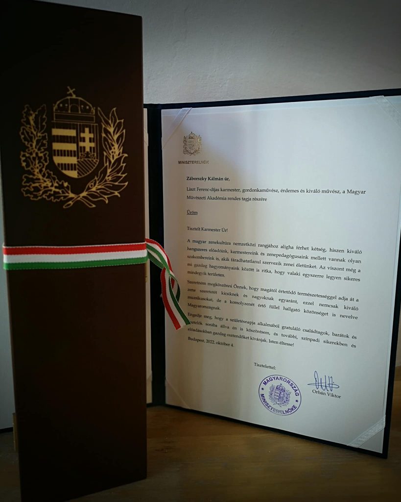 Nagy János Miniszterelnöki Irodát vezető államtitkár és Borbély Ádám önkormányzati képviselő adta át át Miniszterelnök úr köszöntőlevelét, ezzel együtt pedig sok egészséget kívántak a Szent István Filharmonikusok vezető karmesterének, művészeti vezetőjének.