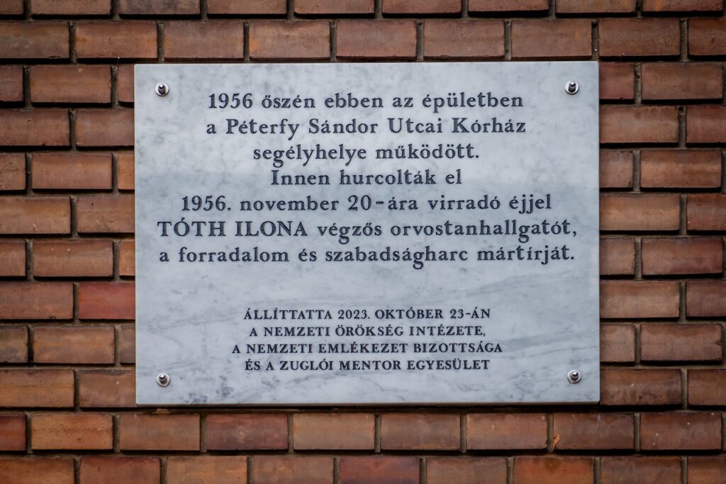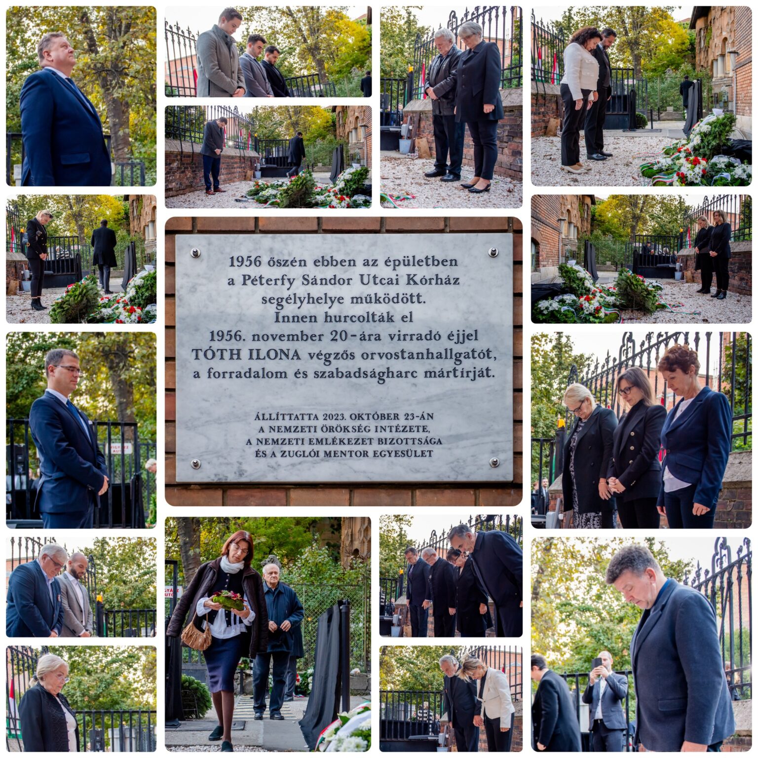 A megemlékezésen MÓCZÁR GÁBOR, a Nemzeti Örökség Intézete főigazgatója, valamint MÁTHÉ ÁRON, a Nemzeti Emlékezet Bizottságának elnökhelyettese mondtak beszédet ott, ahol a mártírhalált halt Tóth Ilona betegeket gyógyított, ahol ’56-os hőssé vált, és ahonnan hóhérai elhurcolták.